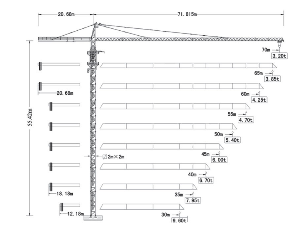 | Высота свободностоящего крана55,42 м |